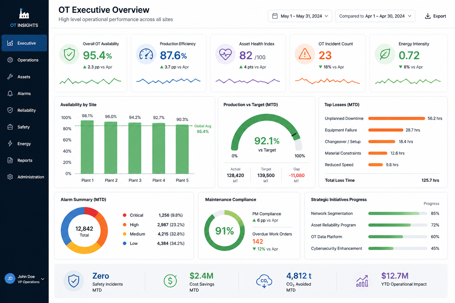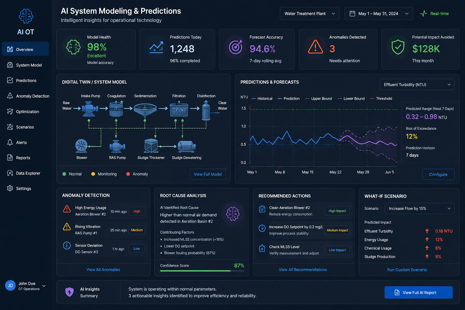 Historians, MES reporting, batch records, regulatory reporting (AWIA, EPA, state DOH). Clean data models that survive the next system you bolt onto them.