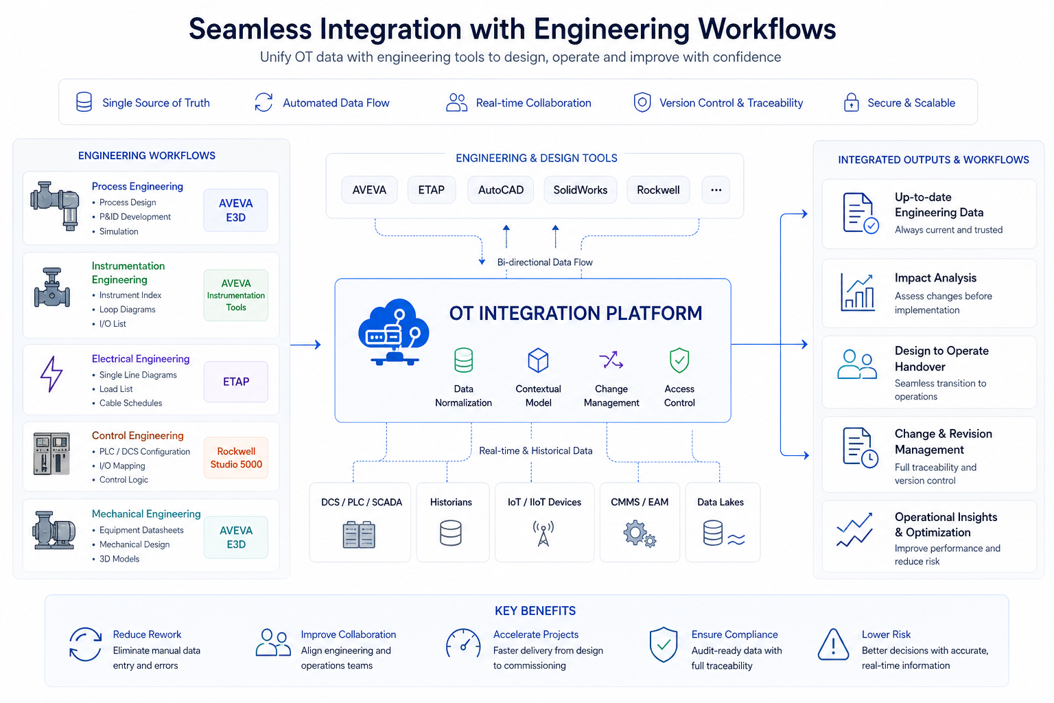Operator workflows that actually fit shift patterns. Approval chains, work orders, mobile sign-off, e-signatures, and integration with your CMMS or ticketing.